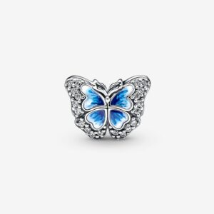 Embrace spring renewal and the season of transformation with our Blue Butterfly Sparkling Charm. Our double-sided sterling silver charm features hand-painted enamel and brilliant-cut clear cubic zirconia along the wings. Raised antennae add a life-like touch. Just like butterflies in nature, each charm is unique. Wear it with our matching Blue Butterfly Hoop Earrings for a coordinated statement this spring.