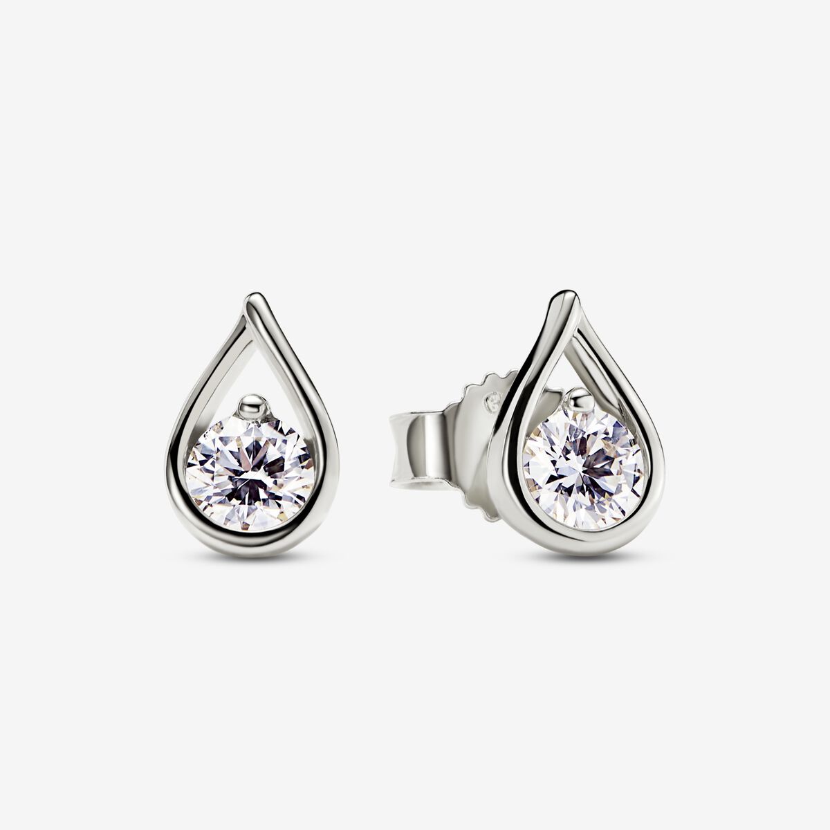 “A pair of solid 14k white gold stud earrings each hand set with a 0.25 carat lab-created diamond. A sparkling celebration of the infinite potential within all of us, these earrings feature a radiant round brilliant lab-created diamond suspended in our modern infinity setting. “
