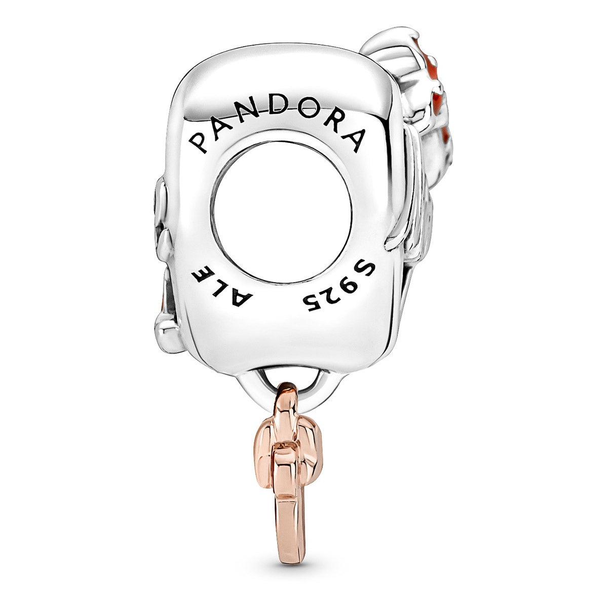 The Disney Minnie Mouse Mum Heart charm is the perfect gift for every Disney mom. Hand-finished in sterling silver with openwork script ‘MOM’ and ‘LOVE’ on either side, the charm features a dangling detail in 14k rose gold-plated metal. This heart-shaped piece also features a little red heart and bow with hand-applied enamel. Say it with a special piece that mom will treasure as a part of her collection.