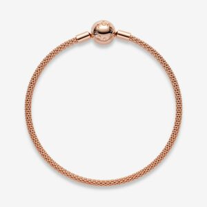 Start your next charm collection with this stylish Pandora Moments Mesh Bracelet with a textured finish. The 14k rose gold-plated bracelet’s woven mesh is perfect for adding contrast to layered looks and makes for effortless everyday styling. Wear yours solo or stack with other charm bracelets, adding favourite charms to suit your mood.
