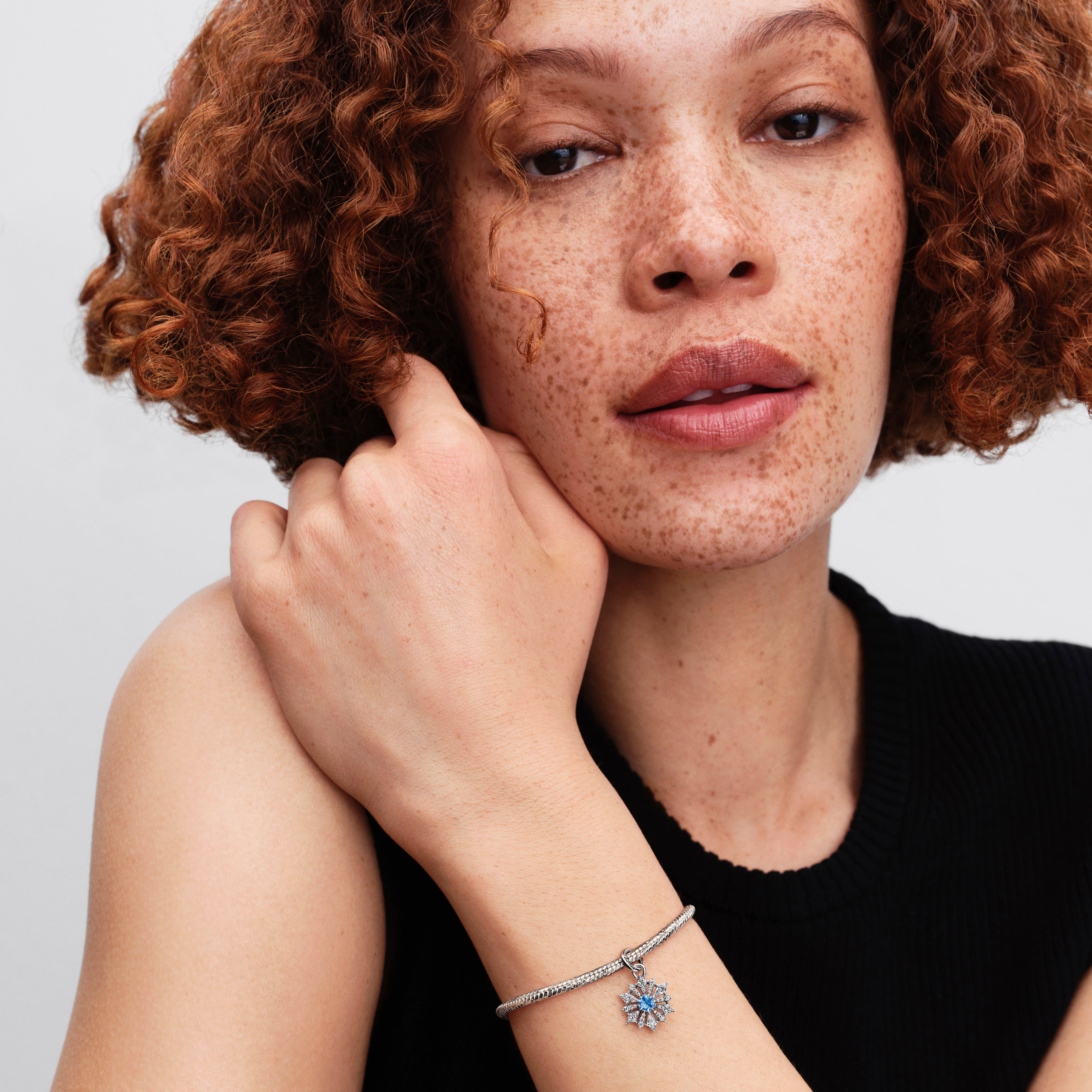 Channel Queen Elsa’s strength and grace. Crafted in sterling silver, this snowflake dangle charm glistens with icy blue man-made crystals and clear cubic zirconia — a sparkling tribute to inner power and transformation.