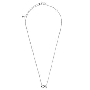 The delicate infinity collier necklace symbolizes love that lasts for all eternity. It dazzles in sterling silver and features clear cubic zirconia for added sparkle. Inspired by the eternal bond between a mother and a child, the infinity symbol lends gravitas to your emotions and helps you express exactly how you feel with a universally recognized sign for a deep connection. Style with other infinity-inspired pieces or gift the eternity necklace to someone you love to infinity and beyond.