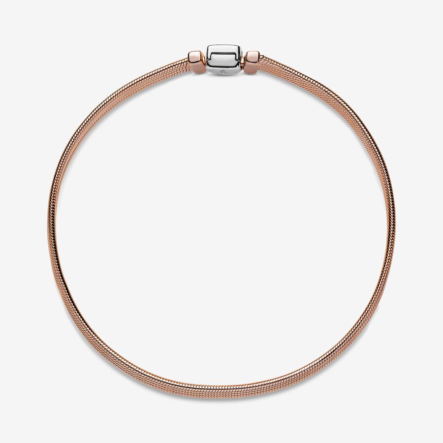Wear the Pandora Reflexions Multi Snake Chain Bracelet alone or loaded with clip-on charms. The two-tone design comes to life when styled with your favourite symbols. The four individual snake chain strands are hand-finished in 14k rose gold plating, while the clasp is made from sterling silver and provides a cool contrast to the warm tones of the rose gold-coloured finish. Wear it stacked with other Pandora Reflexions bracelets or alone for a statement look.