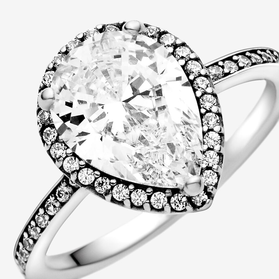 Sparkling Teardrop Halo Ring