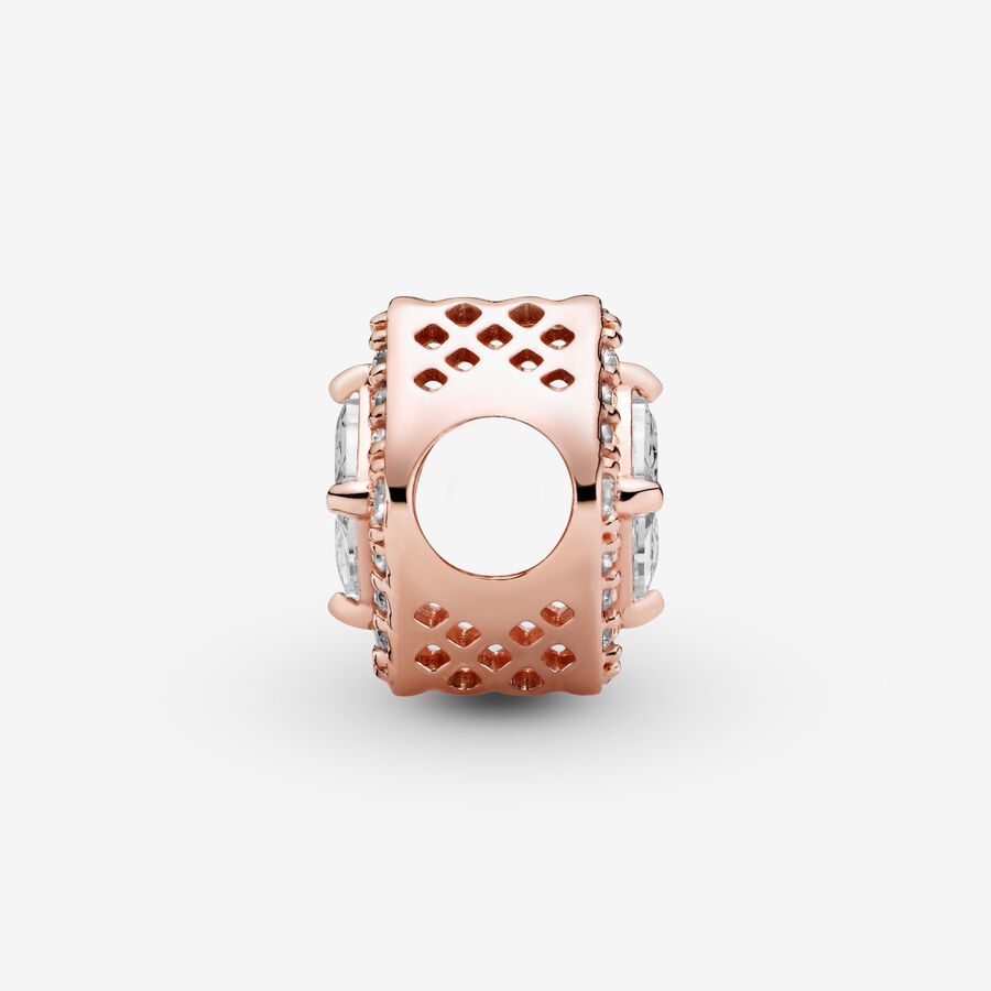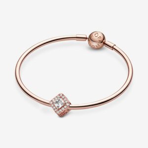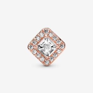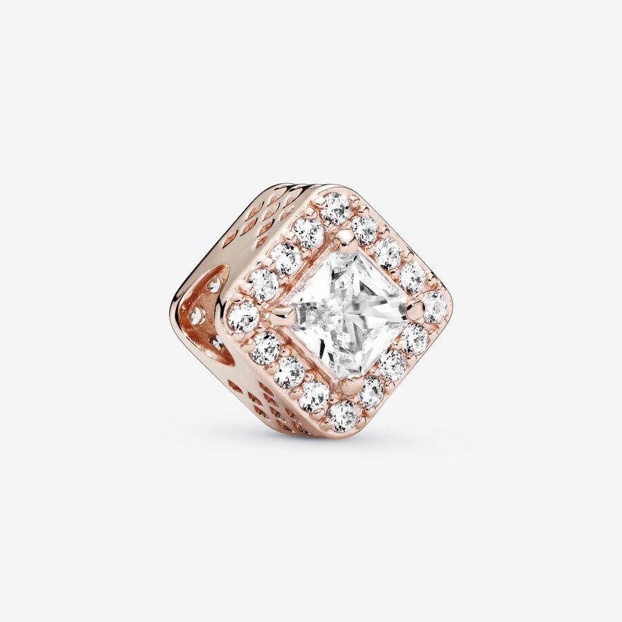 Wear a lasting tribute to beauty and style with this perfectly symmetrical Square Sparkle Halo Charm. The 14k rose gold-plated design features bead set clear cubic zirconia as well as two claw-set octagon cubic zirconia, faceted to catch the light and add a dose of dazzling drama to your look. Cut-out square shapes give it romantic edge. Wear it when you want to add a touch of sparkle to your look.