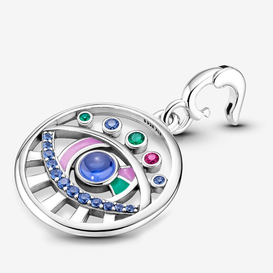 Make sure all eyes are on you with the ME The Eye Medallion. Hand-finished in Silver plated, our meaningful medallion features an eye motif that evokes looking deep beneath the surface at inner beauty. Featuring hand-applied magenta and green enamel, this significant amulet is set with red, blue and green brilliant-cut crystals, for a vibrant statement you can mix and match across your link chains. With a simple click-to-close bail, style yours on your ME closed styling links and openable styling connectors across link chain bracelets, necklaces and hoops. Please note this item is only compatible with ME jewelry and will not fit our other collections.Discover how to mix and re-mix your ME look here.